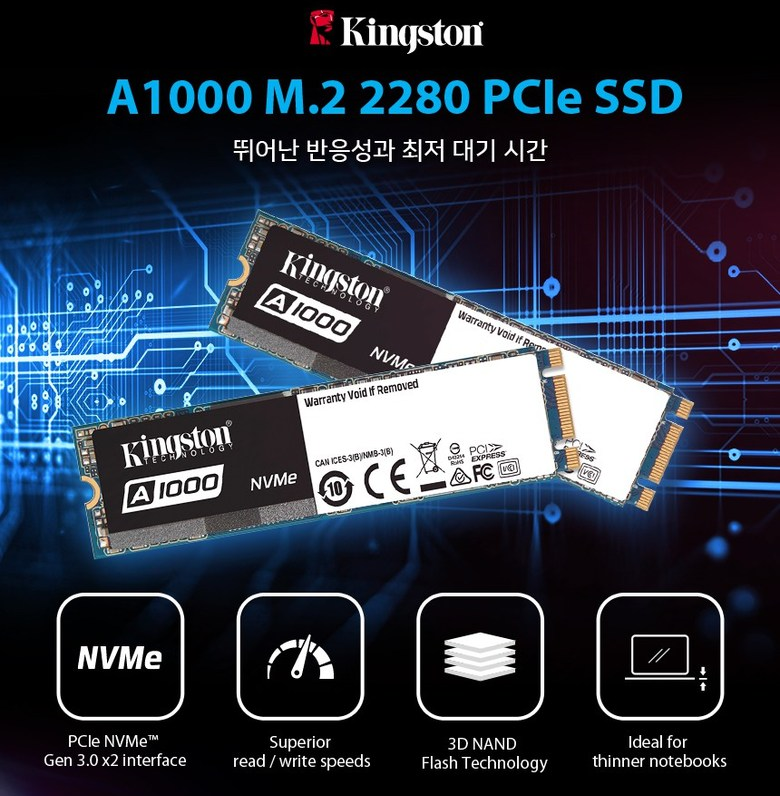 최근에 SSD 를 하나 추가로 영입했습니다. 바로 킹스톤 NVMe A1000 인데요. 그동안 NVMe 는 삼성의 960 Evo 를 사용하고 있기에 속도나 용량적인 면에서 부족함은 없었지만, 개인적인 작업공간을 추가로 확장하기 위해 알아보던중 240 GB 의 용량과 NVMe , 그리고 가격. 마지막으로 브랜드에서 어느정도 타협을 하고보니 킹스톤 NVMe A1000 으로 선택하게되었습니다. 아마 킹스톤 이라는 브랜드에 대해서 무슨 브랜드 빨이야. 라고하시는 분이 계시겠지만, 듣보잡 240GB 보다는 그래도 국내에서 정품인증과 A/s 가 지원되는 브랜드 중에서 가성비. 갓성비를 챙기기 위해서는 킹스톤 NVMe A1000 가 나름 괜찮은 선택이라 고르게되었습니다.