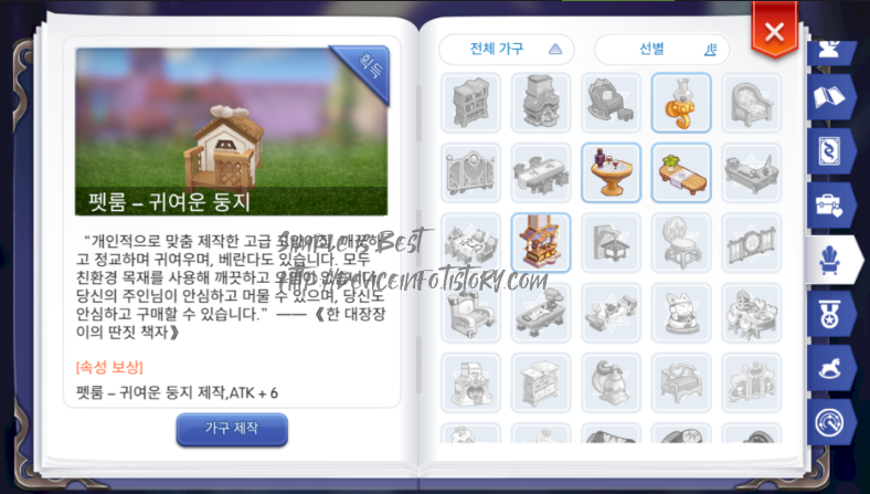 기존 라그나로크 M 부터 있었던 모험수첩에서 우측 하단부로 내려가면 새롭게 가구, 카테고리가 확장 오픈되어 있는 것을 확인할 수 있습니다 이제, 이 중에서 자신이 원하고자 하는 만들고 싶은 제품들을 가구를 만드는 것만으로도 간단하게 스펙(스택)과 함께 그리고 이둔의 황금사과 한 개를 얻을 수 있습니다.