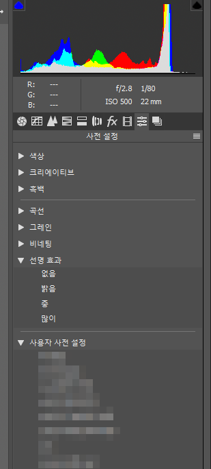 jpeg 프리셋 은 jpeg 파일을 보정할 때만 보이고
