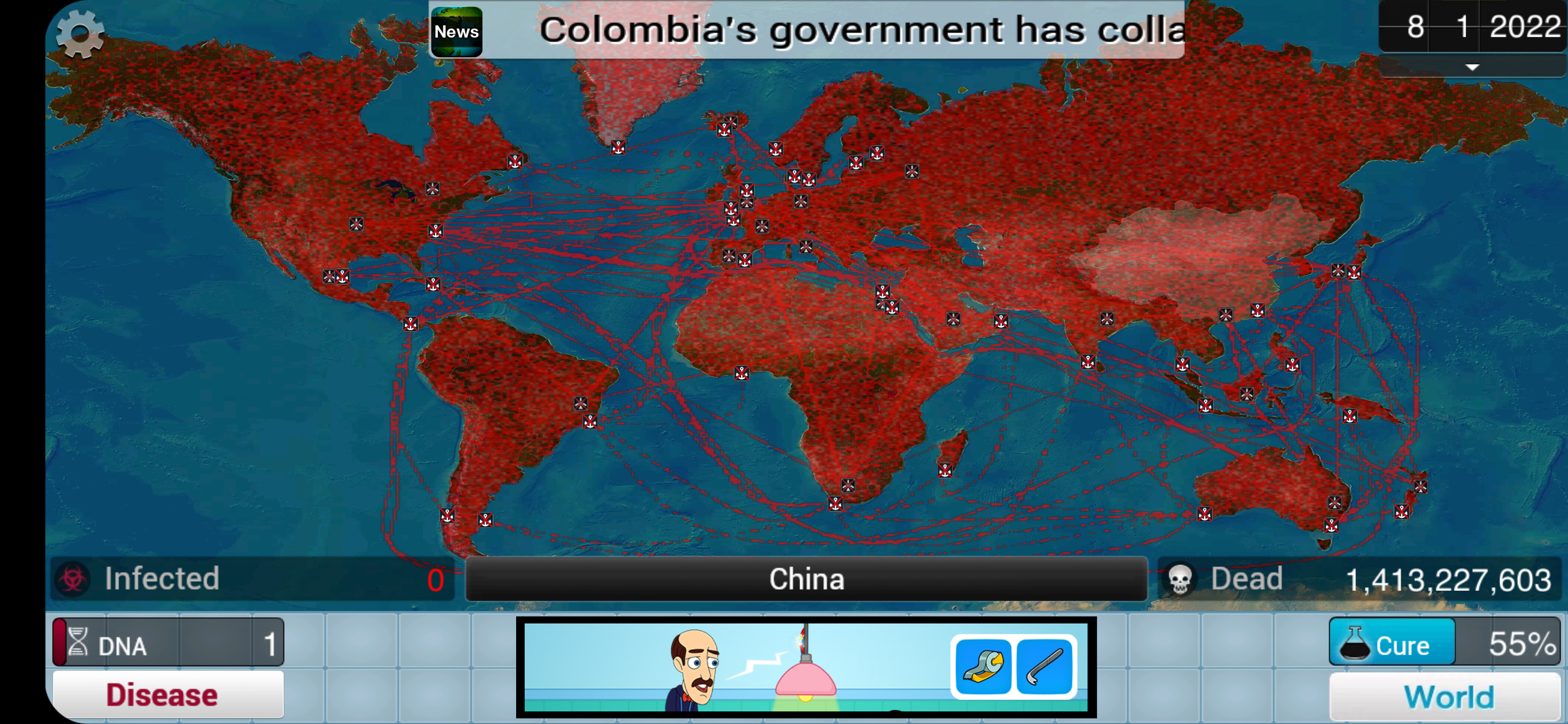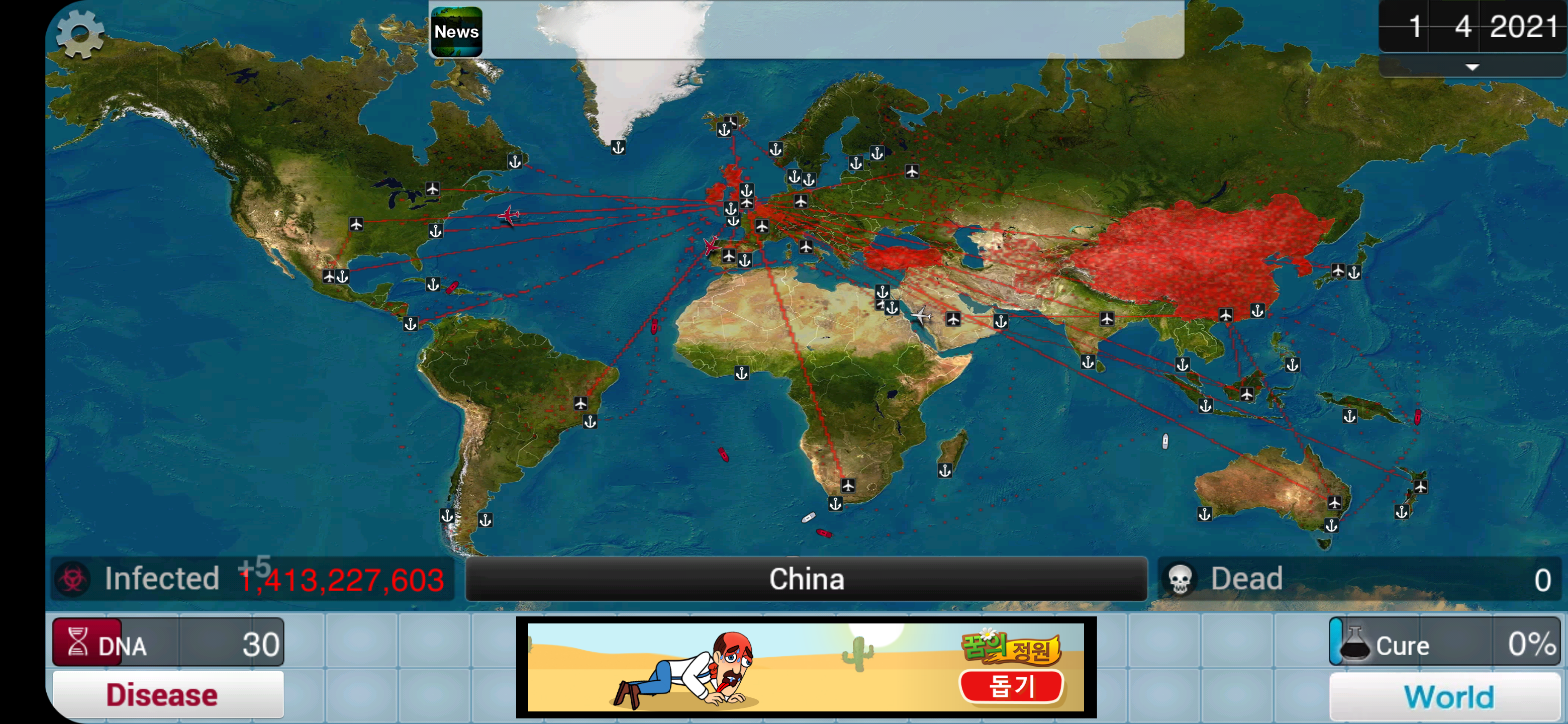 이제 재미있게 전염병 주식회사 Plague inc 플레이 하시면 됩니다. 굳이 한판만 해보고 디울 느낌이라 한국어 적용은 안하고 플레이 했습니다. 처음 하시는 분들은 아무래도 전염병. 의학적인 용어들 때문에 어려우실 수 있으니 거의 필수적으로 한글. 한국어를 적용하신 후 전염병 주식회사 Plague inc 를 플레이 하시는 것을 권장드립니드.