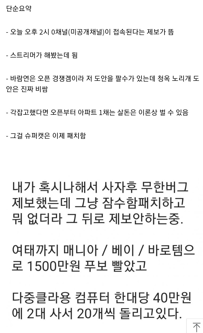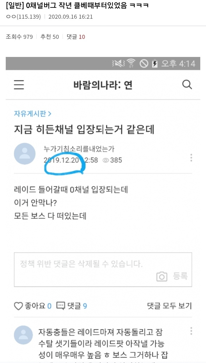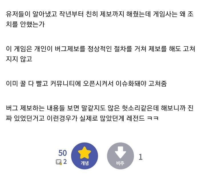 심지어 지난번 패치로 인해생긴 오류도 아니고, 작년 클베때부터 있던 문제였는데
