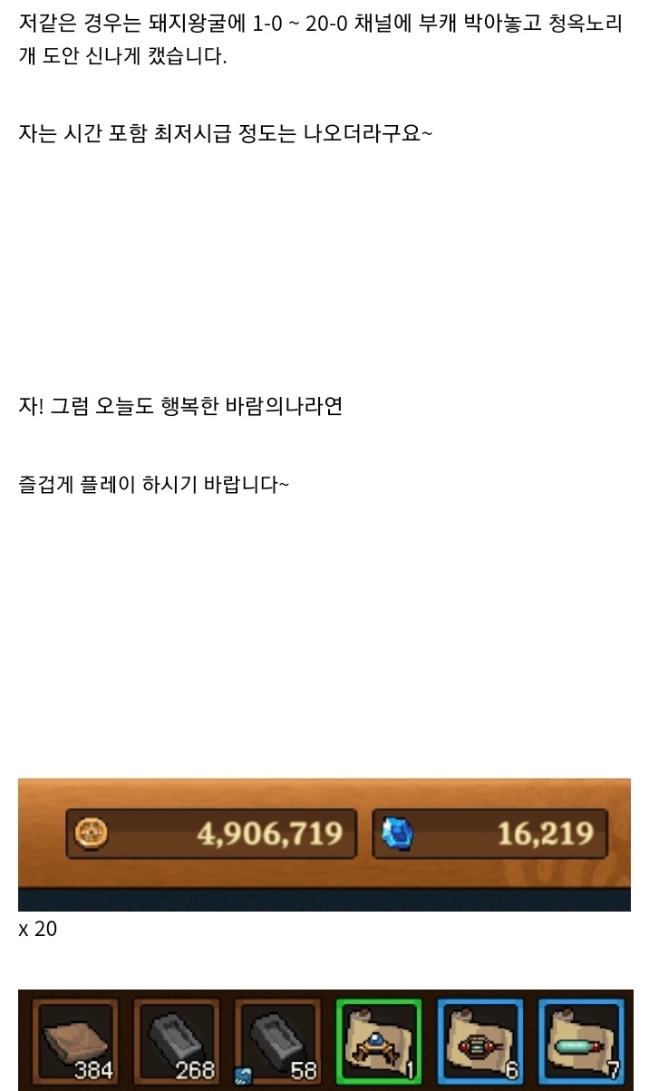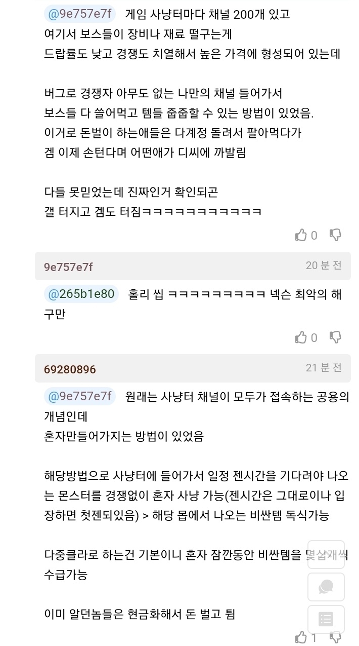 혼자 사냥하고 보스잡고 템파밍하는건. 단순 버그를 넘어서