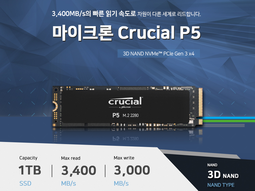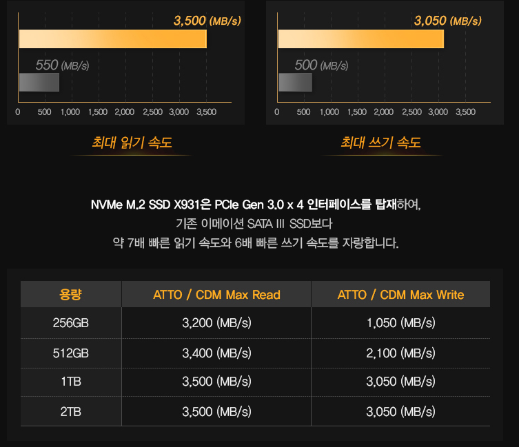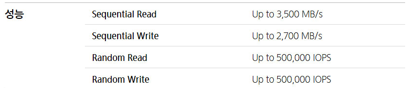 읽기 속도 3,500MB/s 쓰기 속도 3,000MB/s