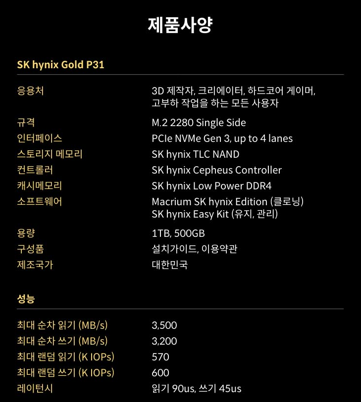 1순위, SK하이닉스 골드 Gold P31 M.2 NVMe 1TB 제품을 추천