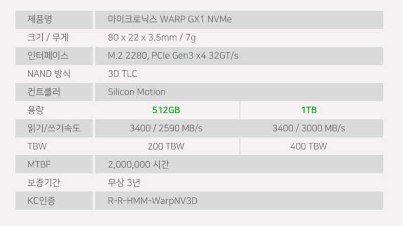 마이크로닉스 WARP GX1 M.2 NVMe 1TB