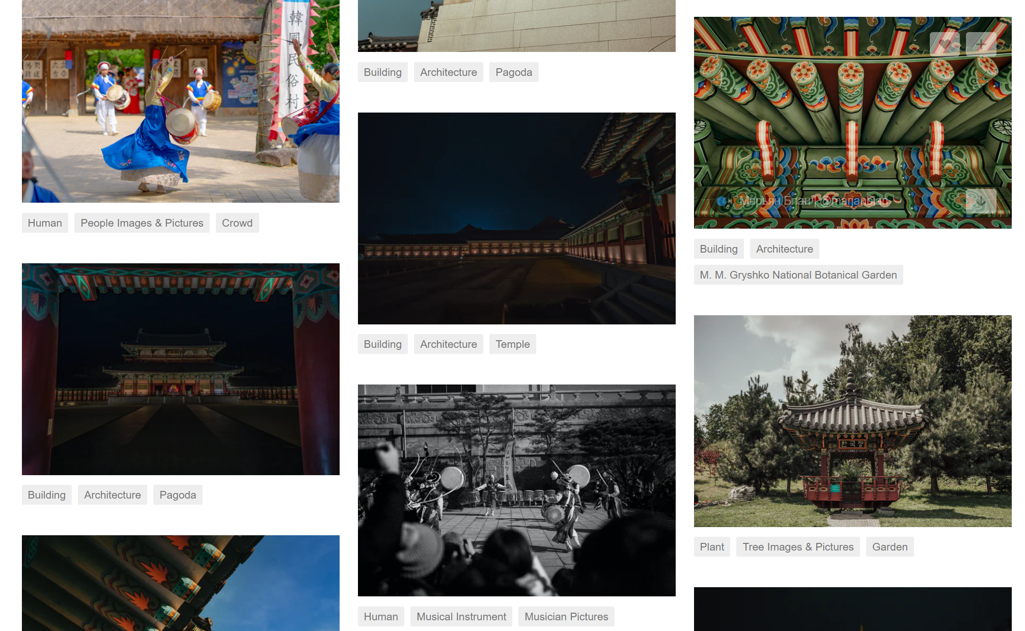 위에 올라온 이미지들은 제가 자주 사용하는 Unsplash 에 올라온 한국 고궁과 관련된 이미지들을 업로드 하였습니다. Unsplash 역시 SNS 의 일종으로 이렇게 사이트에 올리거나, 무료 이미지로 공유하거나 하는 측면의 촬영은 사전 허가 없이 촬영해도 괜찮으나. 셔터스톡, 게티이미지 와 같은 유료로 이미지를 판매하는 사이트에는 (비록 에디토리얼 일지라도) 금전적인 부분이 오가는 만큼 사전에 하거를 받고 촬영해야 할 것입니다.