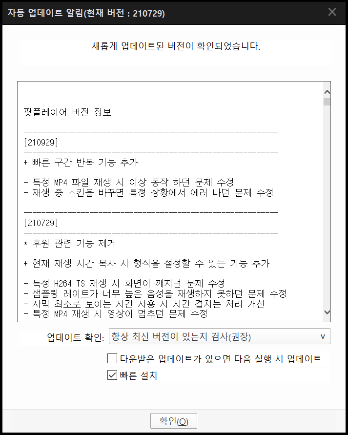 | 팟플레이어 211118 버전 업데이트 정보 (0) | 2021.11.18 |