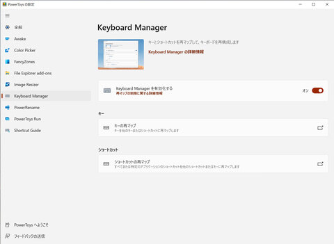 Microsoft 유틸리티 "PowerToys" 키 매핑을 변경할 수있는 "Keyboard Manager"가 포함 된
