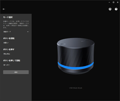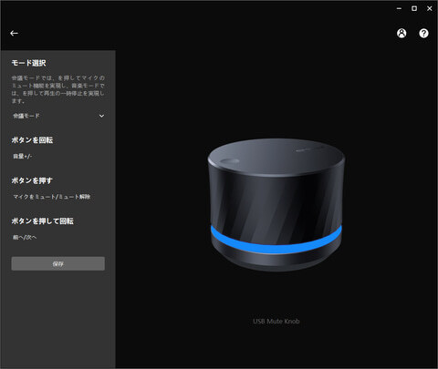 동작 설정은 3 가지 모드에서 쉽게 선택할 수있는 형태로되어있다. 하나는 '회의 모드'에서 다이얼의 회전이 "볼륨 + (음량의 오르내림) '밀어가"마이크를 음소거 / 음소거 해제 "누르면서 회전이"이전 / 다음 (트랙 앞뒤 생략) "(Web 회의 도구는 특히 쓸모 없을 것)에 각각 할당된다. "음악 모드"는 밀어가 "(미디어) 재생 / 정지"가되어 다른 회의 모드와 같다.