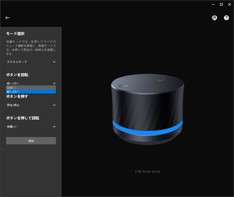 다른 하나는 "사용자 모드"에서 각 작업에 사용자가 수동으로 동작을 지정할 수있다. 그러나 미리 준비된 몇 가지 옵션 중에서 선택할만으로 자유도는 높지 않다. 예를 들어 회전 조작에 대해서는 "볼륨 +"또는 "이전 / 다음"중 하나를 누르은 "마이크를 음소거 / 음소거 해제" "스피커를 음소거 / 음소거 해제" "재생 / 정지"의 3 개 밖에 없다.