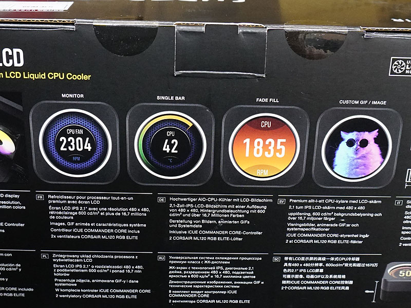액정 디스플레이부 냉각 블록을 채용한 CORSAIR의 수냉 CPU쿨러가 출시됐다. 라인 업은 라디에이터 사이즈가 240mm의 iCUE H100i ELITE LCD(CW-9060061-WW) (이하 H100i LCD) 와 360mm의 iCUE H150i ELITE LCD (CW-9060062-WW) (이하 H150i LCD)의 두가지 모델이다.
