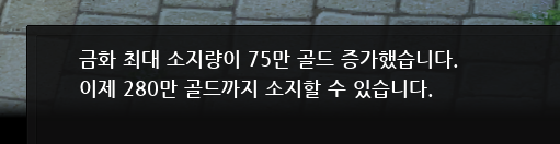 다만 100만 골드를 넘어가면 그 이상은 소지할수 없다는 내용이 나옵니다.