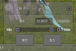 1. 캐릭터 간 거래 창에서 [금화]버튼을 눌러, 상대가 받을 수 있는 한도 내에서 최대 100만 골드까지 금화를 올릴 수 있습니다.