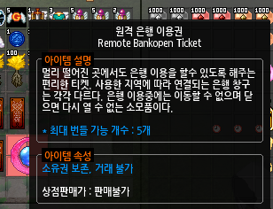 이 아닐까 싶습니다. 골드가 터졌을 경우에 위에 말한 것처럼 펫을 이용하는 방법이 가장 안정적이고 빠른 입출금 방법이지만, 펫 마저 가득찬 상황에서는 그나마 이 원격 은행 이용권이라도 사용해야하니까요. 인벤에 2~3개는 한두개씩 가지고 다니는 편이 혹시 모를 상황에 충분히 대비할 수 있을 것이라 생각됩니다.