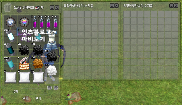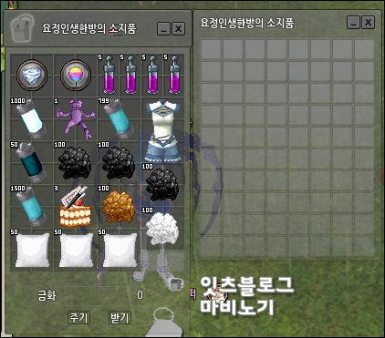 이미 스쿠터 한마리가 결합된 상태입니다. 넓어진 인벤토리는 마음의 풍요로움을 느끼게 해줍니다. 아무래도 채집시 항상 소환하고 있다보니 바로바로 넣고 뺴고 하는 등의 다양한 활용이 가능합니다. 그런면에서 본다면 오히려 기본 8 * 10 의 인벤토리는 작게 느껴지는 편.