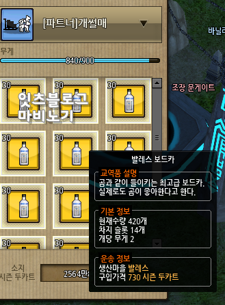 마비노기 교역, 발레스 신용레벨7 발레스 보드카 밀수 차익
