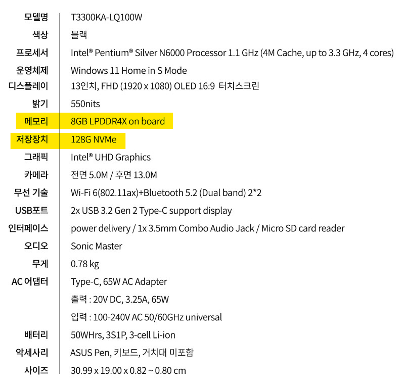 처음 ASUS 공식 홈페이지에서 확인했을때의 스펙과 많이 동떨어져 있다. 아니 동떨어져 있다기 보다는, 최하위 성능이 있긴 했지만, 설마 그 성능으로 국내 출시할 줄은 몰랐다.