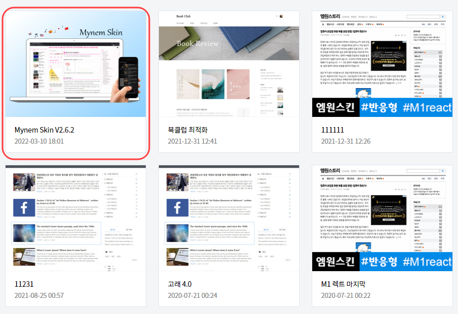 그리고 22년 3월 10일 이후로 블로그에 적용하게 되는 스킨인 Mynem Skin V2.6.2 입니다.