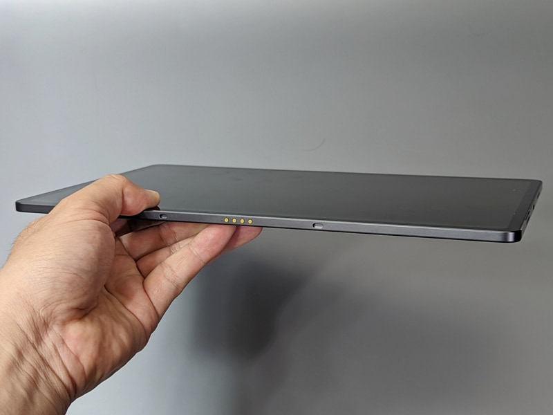 바닥에는 옵션의 키보드를 자력으로 흡착시키기 위한 포고 핀이 있다 카드 슬롯.최대 512GB까지 대응한다