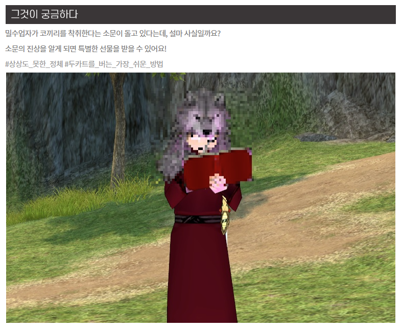 코끼리를 착취한다는 소문, 진상을 알고 선물을 받아라- 입니다. 스토리 내용은 없지만, 나름 재밌는 스포일까요