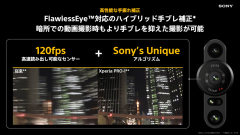 상세한 기술 사양에 관해서는 대답 못하지만 BIONZ X for Mobile(Xperia·α 개발 중에 쌓아 온 내재 기술)의 카메라 전용기용 소니만의 다양한 화상 처리 알고리즘과 스마트 폰의 영악함을 더하고 있습니다.