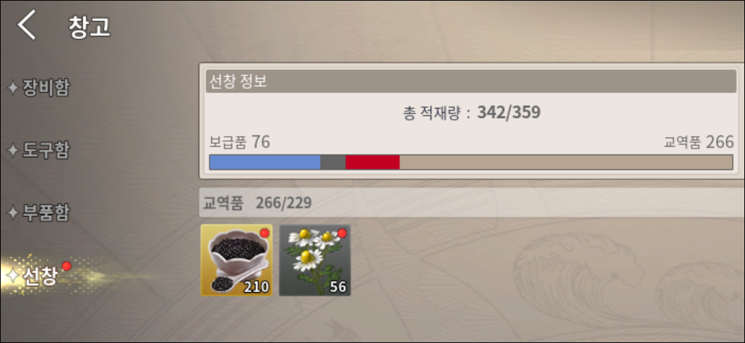 이 때를 놓치지 않고 교역품을 확인하는 방법이 있으나, 이 방법은 계속해서 핸드폰을 혹은 게임 화면을 보고 있어야 한다는 단점이 있기에 간간히 게임 화면을 확인하면서 플레이 하시는 분들에게 있어서는 그다지 좋은, 유용한 방법은 아니라 생각합니다.