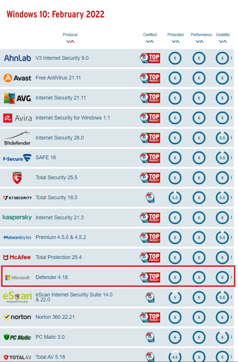 기본 백신이라고 생각하시는 분들이 많으실텐데요, 윈도우 디펜더는 의외로 훌륭한 성능을 가지고 있습니다. 실제로 위에 있는 이미지의 우측 이미지만 보더라도 6,6,6 에 해당하는 만점에 가까운, 상위 백신프로그램들과 동일한 점수를 보여줍니다. 그리고 우리는 이 백신프로그램을 단지 윈도우10 을 사용하고 있다는 것만으로 무료로 사용하고 있습니다.