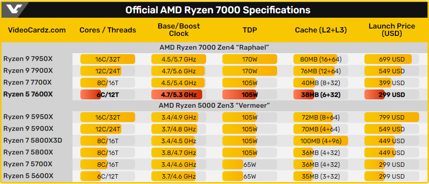 라이젠 5600 X 는 싱글코어 1613 점과 멀티코어 8149 점을 얻었는데, 이를 라이젠 7600X 와 비교해보면 40% 이상 개선된, 빠른 성능을 보인다고 확인할 수 있겠습니다.