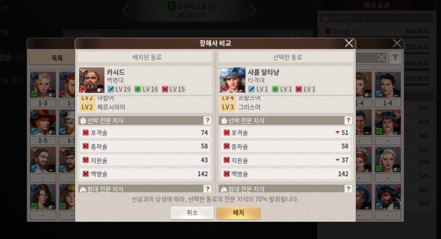 대항해시대 오리진에서 항해사 / 동료가 가지는 성능은 굉장히 큽니다.