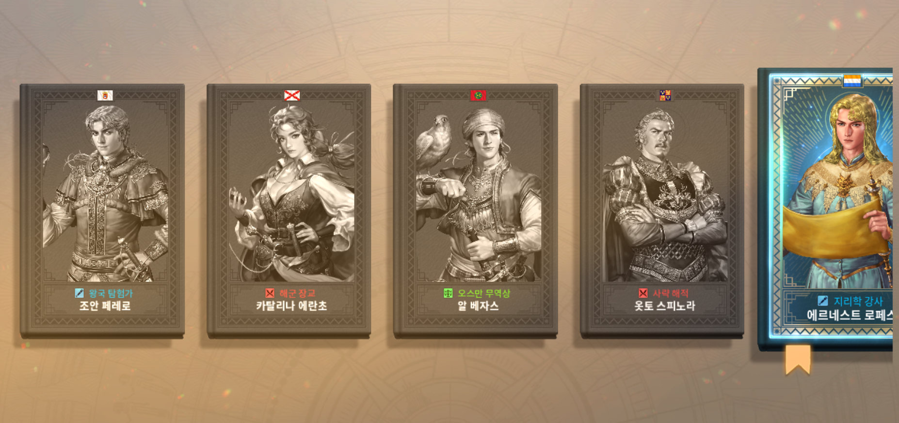 가장 잘 알려진 유명한 S급 항해사인 사피예 술탄(교역)을 제외하고서라도, 페르난도 데마가야네스(모험) 와 도쿠가와 이에야스(전투) 를 영입할 수 있습니다.
