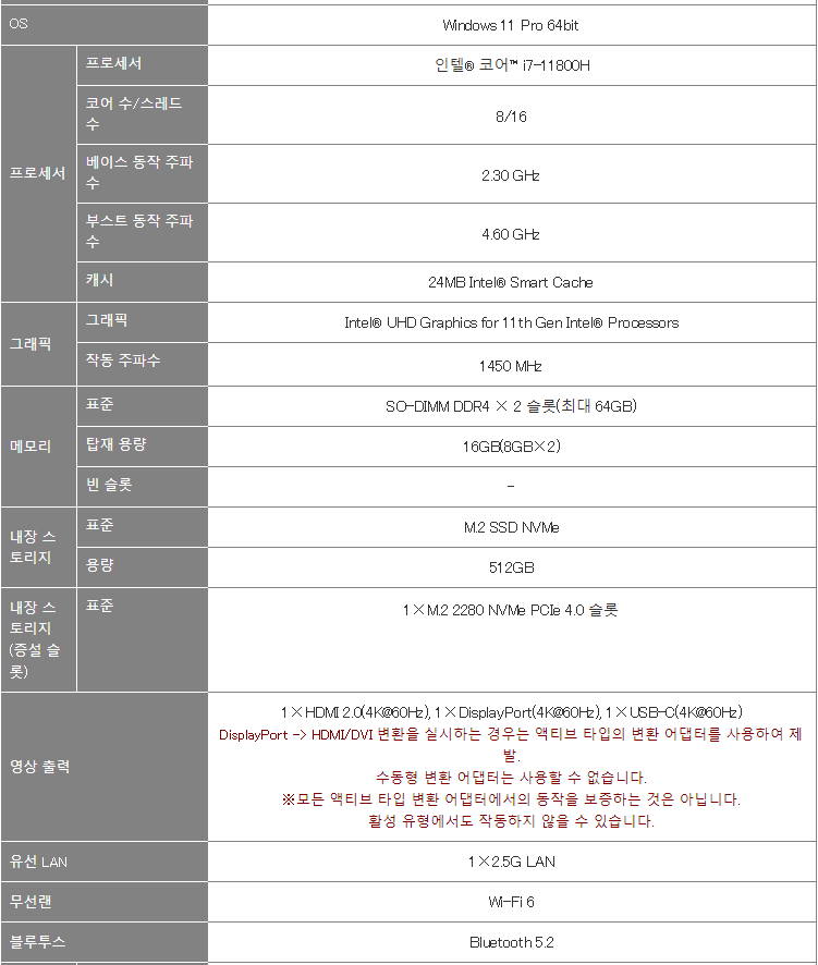 Intel® Core™ i7-11800H 탑재 초박형 데스크탑 PC