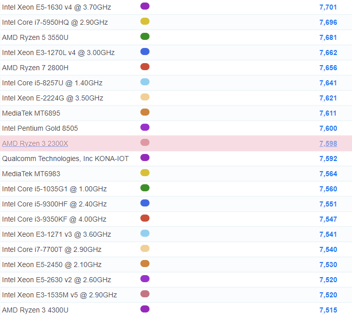 데스크탑 CPU인 AMD Ryzen 5 1400 이 7,751 . AMD Ryzen 3 4300U 가 7,515점 정도의 성능을 가지고 있다.