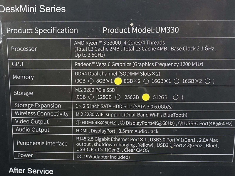 모델 : 「UM330-8/256-W10Pro(3300U)」 , 「UM330-8/256- W11Pro(3300U)」