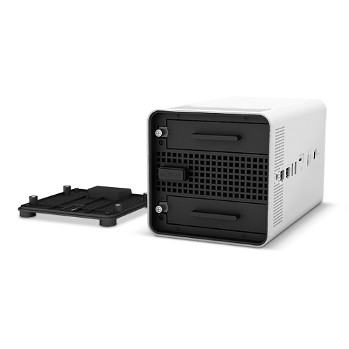 NAS400은 전체적으로 수납하는 하드디스크의 개수가 많다 보니 눕혀서 사용한다는 느낌을 받을 수 있습니다.