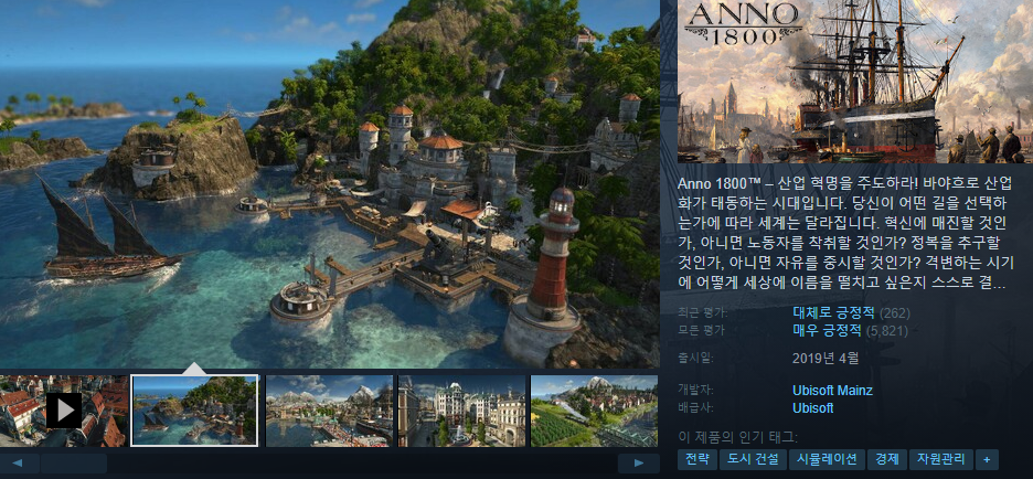 사전판매 했다가, 특정 플랫폼 한정으로 출시하고, 다시 돌아온 게임, 양심없는 게임, 이래저래 많은 사람들에게 욕을 먹고는 있지만 그래도 좋아하는 사람들은 어쩔 수 없이, 혹은 그나마 이거라도… 하면서 재미있게 만족하면서 사용하고 있는 시뮬레이션 게임, 유비소프트에서 출시한 아노 1800 / Anno 1800 입니다. 이건 정말… 네 말이 많습니다.