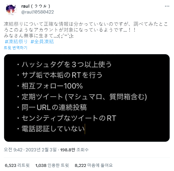 23년 2월, 트위터 영구 정지를 당한 계정들 공통사항