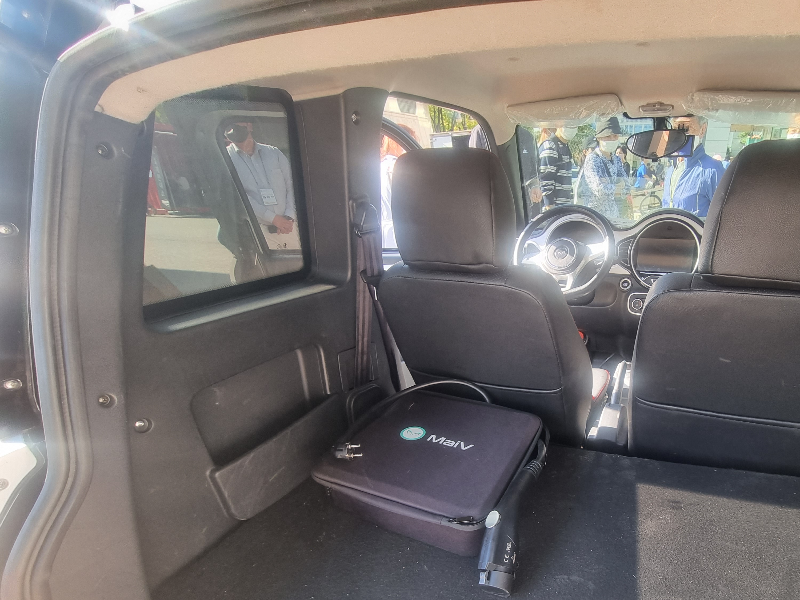 MaiV M1 의 축전지 용량은 10kWh입니다. 도심에서는 60.8km, 고속도로에서는 52.2km, 그리고 복합적인 조건에서는 56.9km의 주행거리를 가지고 있는 것으로 확인되며, 차체 크기는 전장 2845mm, 전폭 1500mm, 전고 1565mm이며, 윤거 전후 1285mm/1330mm , 휠베이스 1815mm 라고 입니다. 모터의 최고 출력은 13kW이고 최대 토크는 90Nm입니다.