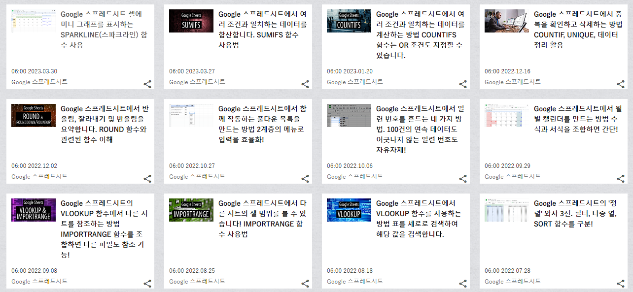 일본어로 되어 있지만 아무래도 확인하기가 전반적으로 편리합니다 크롬이나 웨일브라우저 사용하시는분들은 마우스 우측을 클릭을 하신다 함 한국어로 변환하기 기능을 통해서, 한국 자동 번역을 해서 읽으시면 될 거 같습니다. 기본적으로 구글 스프레드시트 엑셀함수를 베이스로 하고 있기 때문에 다양한 활용방법과 예시들이 많이 중요할 뿐이지, 언어적으로 있어서 문제 되거나 어려운 것은 없다고 생각합니다.
