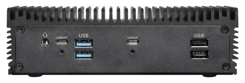 하드웨어 스펙으로는 PCIe Gen 4 x4 스토리지를 위한 M.2 2280 슬롯, 2.5인치 SATA 3 HDD 또는 SSD를 위한 슬롯, PCIe x1 무선랜카드 용 M.2 2230 슬롯, 2 x 2.5 GbE 이더넷, HDMI 2.0b, DisplayPort 1.4a, Thunderbolt 4, USB 3.2 Gen 2 Type-C, 4 x USB 3.2 Gen 2 Type-A, 2 x USB 2.0 Type-A, 3.5mm 오디오 및 RS-232 COM이 탑재되어 있는데, 썬더볼트4 와 USB4 포트, USB 3.2 C타입 포트가 있는 점을 보아, 일반적인 미니PC에서 보기에도 다양한 고성능의 확장성을 탑재한 것을 확인할 수 있습니다.