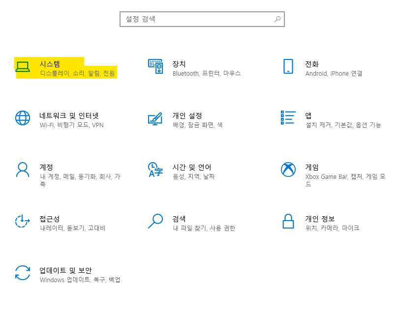 단축키 ' Window Key + I ' 버튼을 누르면 제어판 화면이 뜹니다.