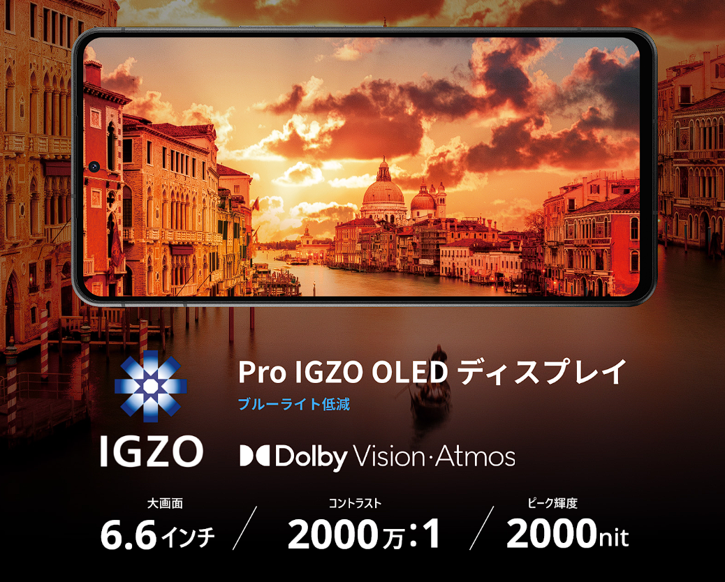 디스플레이는 1-240Hz로 가변 구동하는 독자적인 Pro IGZO OLED를 탑재해 높은 에너지 절감 성능과 매끄럽고 선명한 화질을 구현한다. 또한, 10억 컬러의 표현력을 가진 화면의 아름다움은 그대로 유지하면서 블루라이트의 발광을 기존 제품 대비 약 50% 감소시켰다. 영화관에서 사용되는 HDR 영상 기술 'Dolby Vision ®︎'과 입체 음향 기술 'Dolby Atmos ®︎'도 지원한다. 약 6.6인치의 대화면으로 실감나는 영상과 사운드의 세계에 빠져들 수 있다.