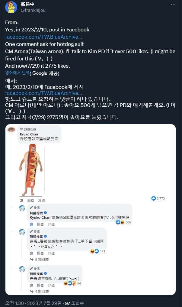 그 결과 블루아카 대만서버는 대만에서 유명한 핫도그 체인점 과 콜라보를 하기에 이르게 된다.