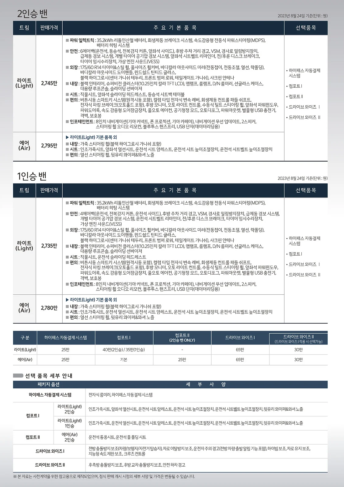 새로운 모델의 가격을 살펴보니 이전 모델보다 1000 만원 가까이 올랐습니다. 그러나 보조금을 고려하면 실제로는 가격 차이가 크게 줄어들어 실제 2000만원 언저리에서 구매할 수 있을 것으로 보여집니다.