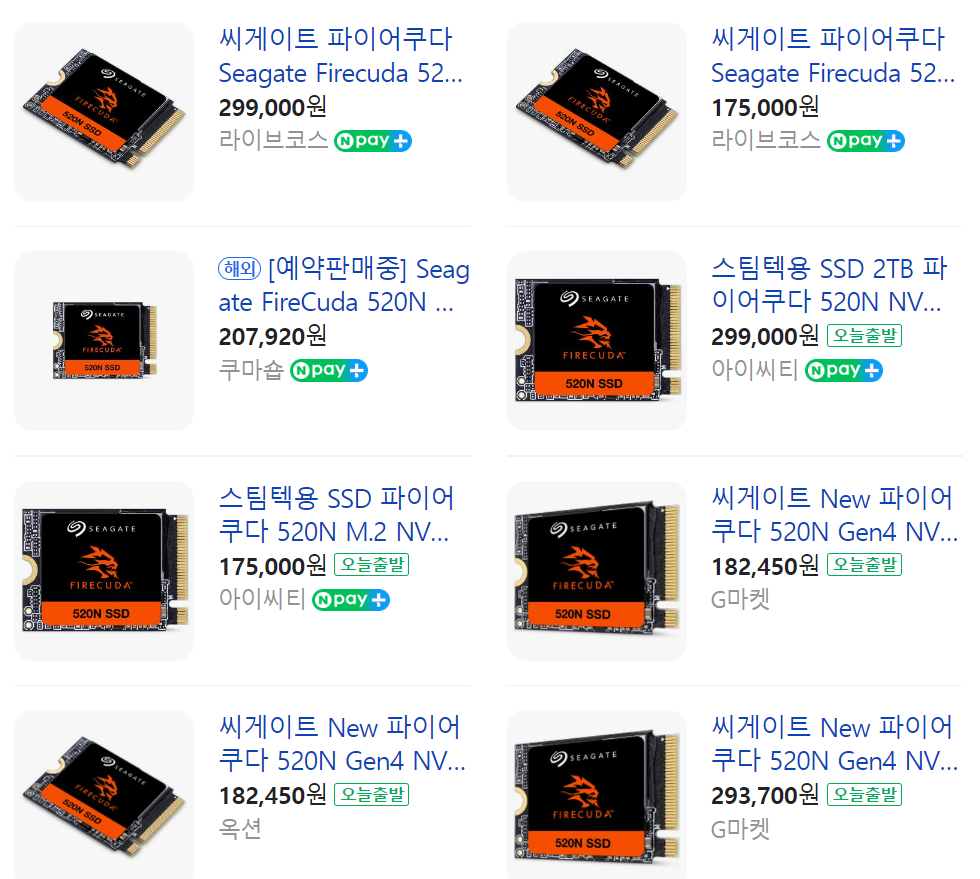 시게이트 파이어쿠다 Seagate FireCuda 520N SSD 스펙 :