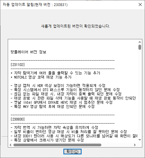| 팟플레이어 버전 230830 업데이트 (0) | 2023.09.03 |