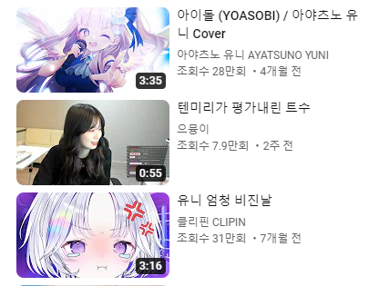 유니유니 클립 좀 보다보면, 유튜브 알고리즘에 다 뜨잖아요...? 아닌가? 나만 그런가??