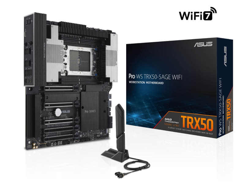 ASUS에서는 Ryzen Threadripper 7000 시리즈에 대응하는 AMD TRX50 칩셋을 탑재한 메인보드 'Pro WS TRX50-SAGE WIFI'를 출시한다. 실판매 예상 가격은 150만원 전후가 될 것이라고 한다.