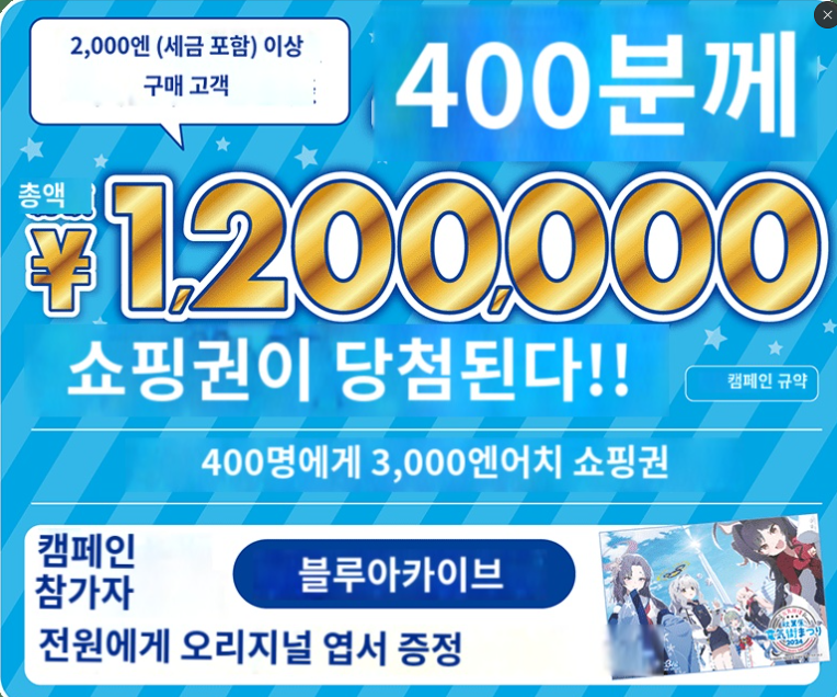 또한 캠페인 참가자 전원에게 '블루 아카이브 오리지널 포스트 카드'도 선물 예정(소진되는 대로 종료). 이 밖에 캠페인 기간 중에 아키하바라 전기가의 X계정을 팔로우하고 대상 포스트를 리포스트하면 추첨을 통해 10명에게 스페셜 플래그(기간 중에 게시한 실물)를 선물하는 기획도 실시 예정이다.
