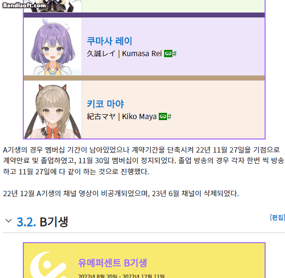 개인적으로는 노래 컨텐츠를 한다고 할 때- 정도 아프리카에 들어가서 라이브 방송을 보기는 했는데 최근에는 막 카카오톡이라고 모든 플랫폼을 합친, 마인크래프트 서버에서 좀 더 비중을 두고 있어서… 딱히 좋아하는 컨텐츠가 아니다 보니 그냥 당분간 덕질을 좀 쉬고 있습니다.