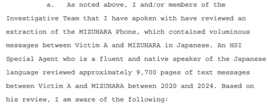 - 미즈하라의 거짓말 : 미즈하라는 오타니가 급여 계좌를 개인적으로 관리하고 싶어하며, 공개하지 않겠다고 에이전트와 회계사들에게 거짓말을 했다.